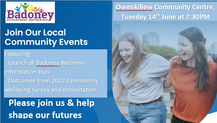 Badoney Development Partnership AGM featuring the launch of the Badoney Wellness Information Hub and outcome from the 2022 Community Wellbeing survey and consultation.