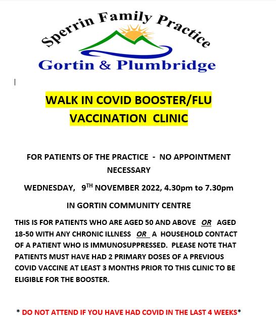 FOR PATIENTS OF THE PRACTICE – NO APPOINTMENT NECESSARY